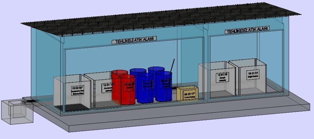 - Tehlikeli atıklar ile tehlikesiz atıkların birbirinden ayrı olarak toplanması, giriş kapılarının farklı olması ve yakınında Yangın Tüpü bulundurulması gerekmektedir.